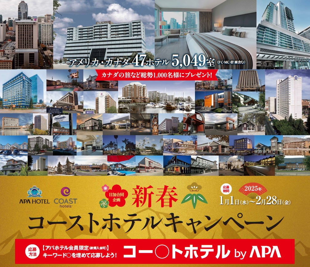カナダの旅など豪華賞品を総勢1,000名様にプレゼント 「新春コーストホテルキャンペーン」