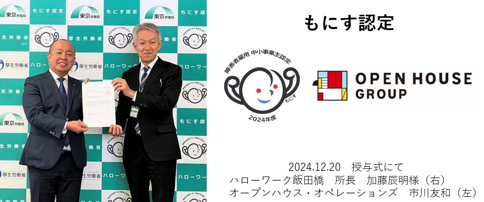 厚生労働省の「もにす認定」を取得