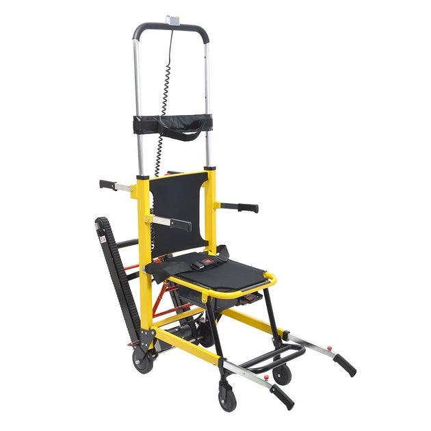 人をイスに座らせて階段を昇り降りできる車イス型電動階段昇降機