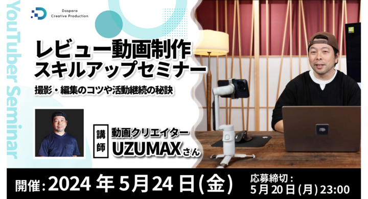 2024年5月10日 【ドスパラ】動画クリエイター UZUMAX氏が極意を伝授 視聴者が夢中になる『レビュー動画制作スキルアップセミナー』 5月24日(金)20時より開催 参加者募集