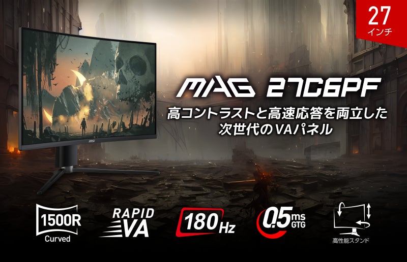 2024年5月16日 180Hz・0.5ms(GTG)で競技性の高いゲームタイトルに最適高性能スタンド搭載27インチ湾曲ゲーミングモニター「MAG 27C6PF」発売
