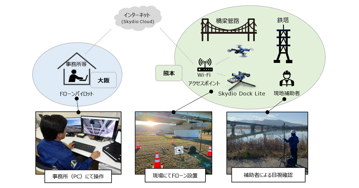 2024年5月23日 橋梁管路および鉄塔の点検業務効率化に向けたドローンの遠隔操作実証実験を実施