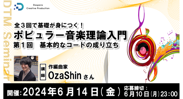 2024年5月31日 【ドスパラ】全3回で基礎が身につく音楽セミナー『ポピュラー音楽理論入門』開催 初回のテーマは「基本的なコードの成り立ち」6月14日(金) 20時より開催