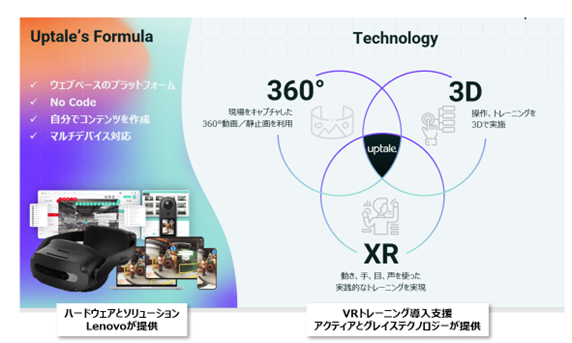 2024年6月6日 レノボ・ジャパン、アクティア、グレイステクノロジーの3社が360度動画・静止画ベースのVRトレーニングソリューション「Uptale」のエンドユーザーへの導入支援で協業