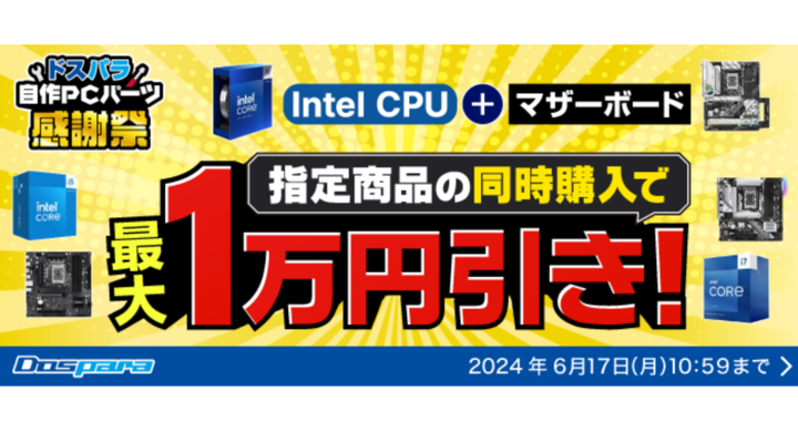 2024年6月7日 【ドスパラ】『ドスパラ自作パーツ感謝祭』“パーツ・周辺機器購入で10万円分の旅行券が当たる”など複数のキャンペーンを同時開催