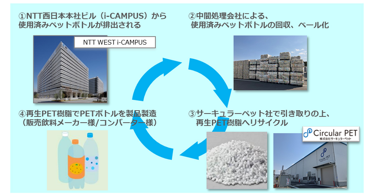 CPET社と、資源循環型社会の実現を目的とした、オフィス等から排出される使用済みペットボトルを、CPET社のペットボトルリサイクル工場へ供給し、再生PET樹脂へと水平リサイクル※1する「ボトルtoボトル」プロジェクトに賛同し、参画することといたしました。