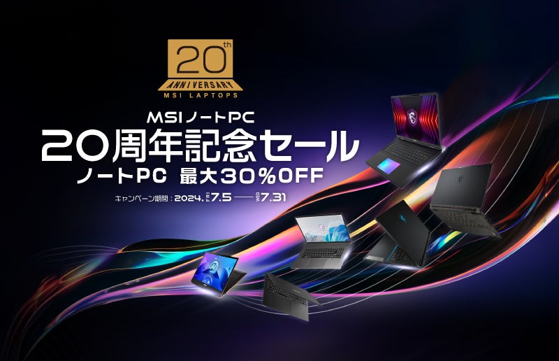 2024年7月5日 誕生から20周年のMSIノートPC 対象ノートPCが最大30%OFF! MSI公式オンラインショップ『MSIノートPC 20周年記念セール』