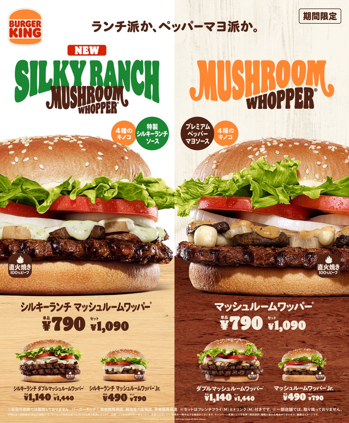 2024/02/22 売上No.1『マッシュルームワッパー 』に新作登場! なめらかなバターミルクとサワークリームを合わせた 爽やかな特製ソースが4種のきのこと相性抜群 『シルキーランチ マッシュルームワッパー』