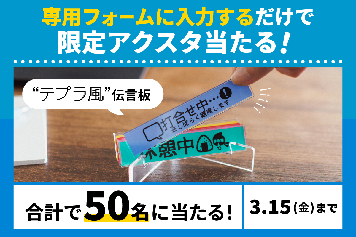 2024年03月01日 「テプラ」風アクスタプレゼントキャンペーンのニュースをご紹介します。株式会社キングジムの公式ウェブサイトです。